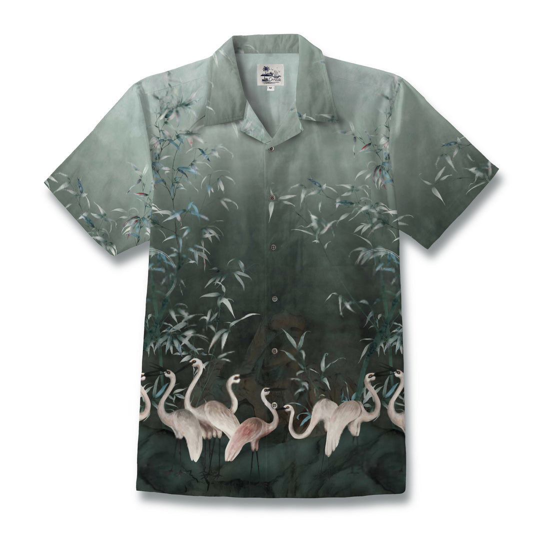 This design captures the serene beauty of a misty bamboo forest where elegant cranes gather by the water’s edge. Soft shades of jade and smoke create a tranquil backdrop, while delicate bamboo leaves sway gently above the graceful birds. The artwork blends traditional Chinese ink painting aesthetics with a modern, minimalist sensibility — evoking a sense of peace, poetry, and timeless elegance.