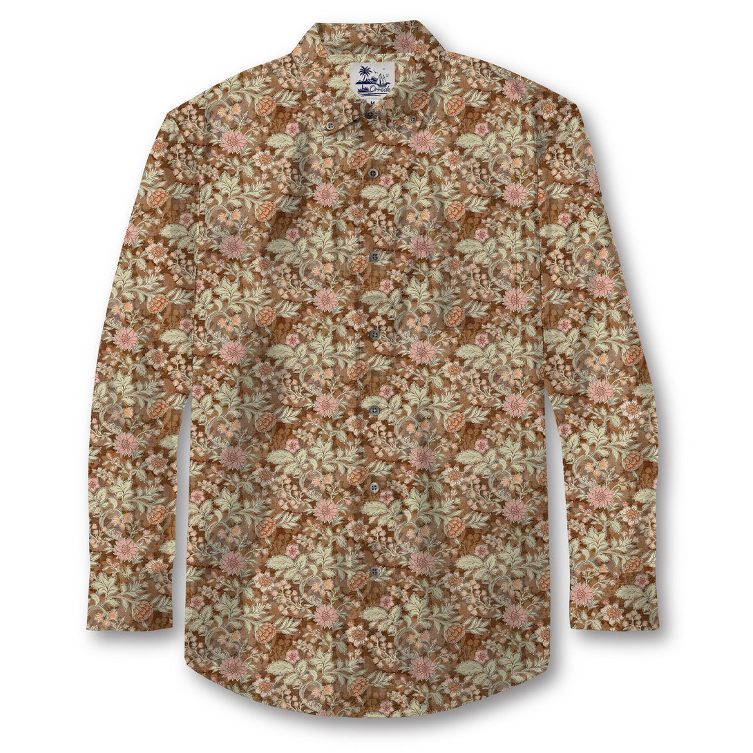 A richly woven tapestry of foliage and blooms, this pattern blends muted earth tones with soft blush and sage accents. The intricate layering of chrysanthemums, roses, and leafy vines evokes a vintage botanical print, carrying the warmth of autumn gardens and the nostalgia of classic textile artistry.