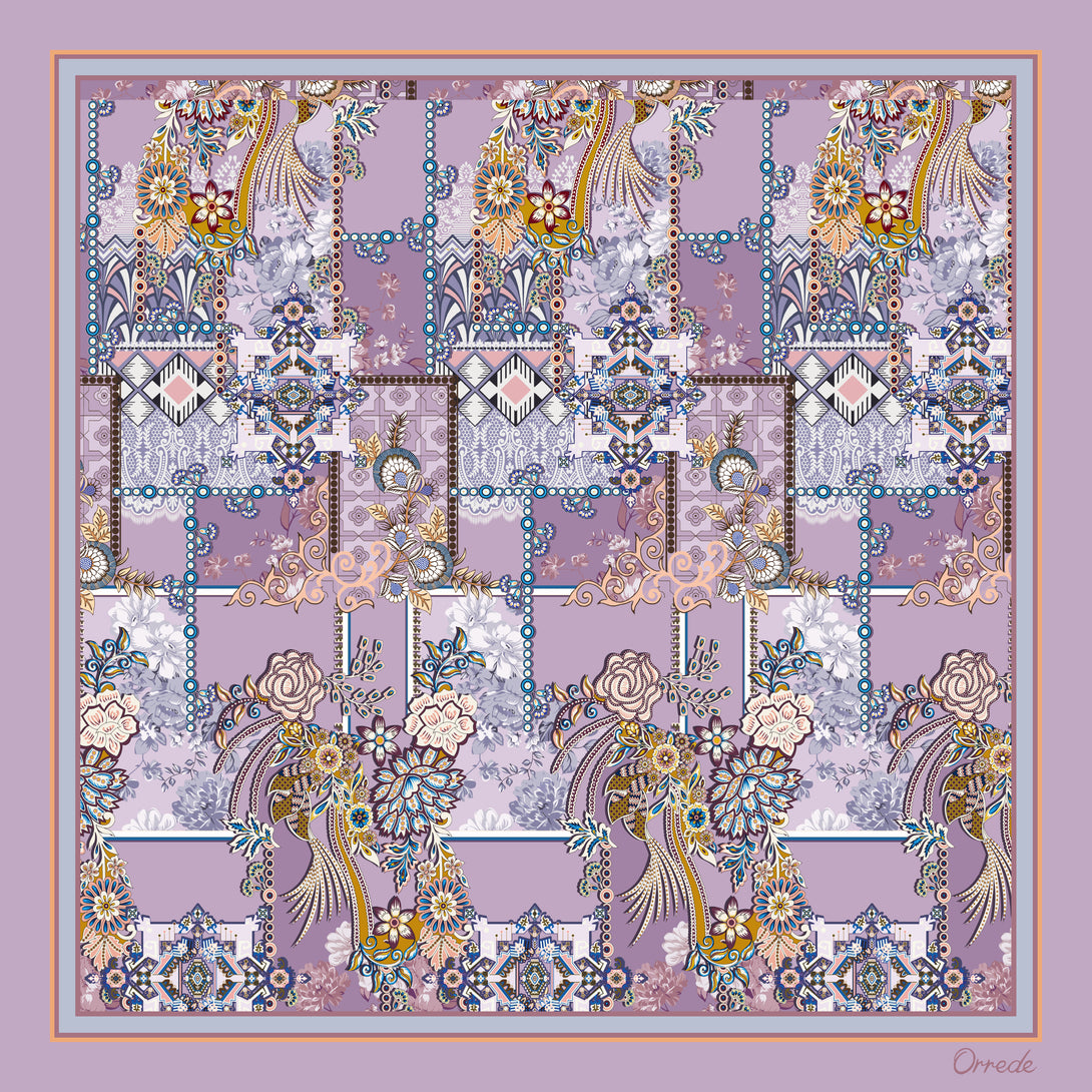 Lavender Phoenix Brocade - 100% Silk Scarf