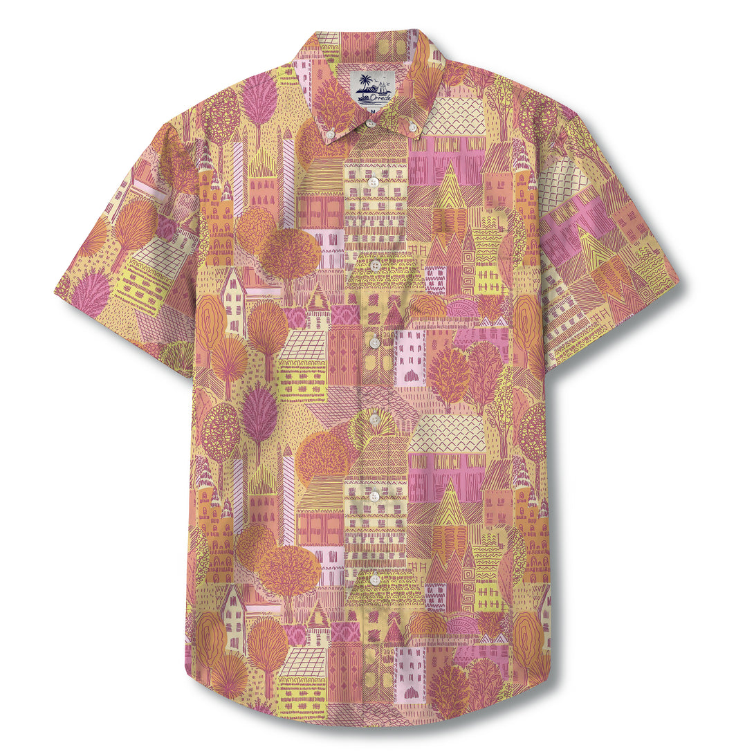 A minimalist line-art pattern capturing the charm of a quaint townscape. Delicate houses and winding streets create a serene, pastoral scene, evoking peaceful countryside life with elegant simplicity.